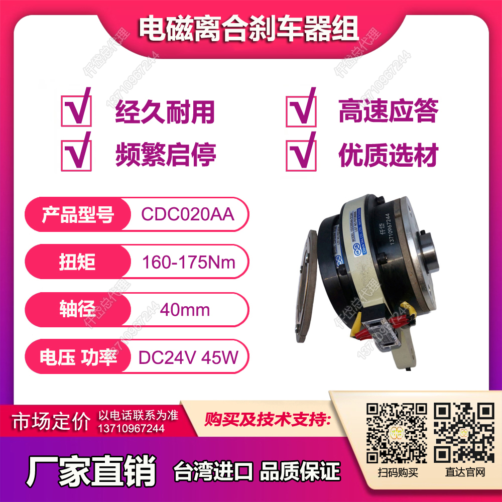 仟岱CDC020AA是台湾仟岱专为商标机、模切机打造的一体化电磁离合刹车组,作为工业电磁离合器中的高精度产品,响应迅速、制动平稳,精准适配印刷机械传动控制需求,为设备稳定运行提供可靠保障。